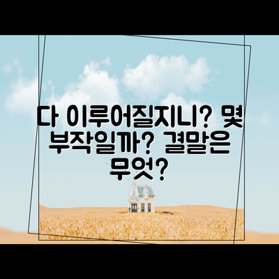 이러한 구성은 시청자들로 하여금 매 회 에피소드에 빠져들게 하며, 다 이루어질지니 몇부작이라는 문의에 대한 명확한 해답을 제공합니다. 모든 에피소드를 통해 전개되는 스토리는 기대감을 저버리지 않고, 앞으로의 전개를 더욱 궁금하게 만듭니다.